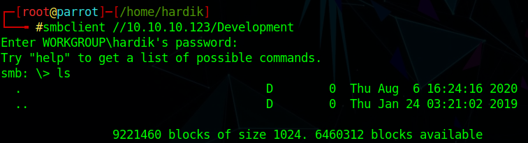 smbclient //10.10.10.123/Development