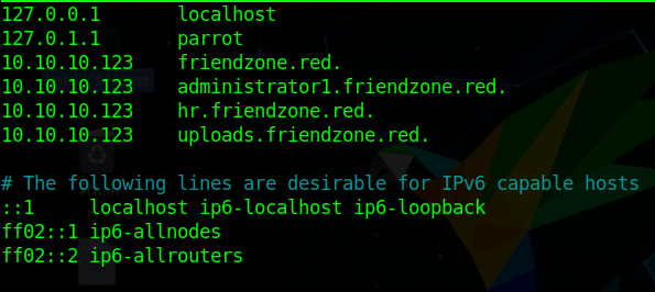 Service Info: Hosts: FRIENDZONE, 127.0.1.1; OSs: Unix, Linux; CPE: cpe:/o:linux:linux_kernel