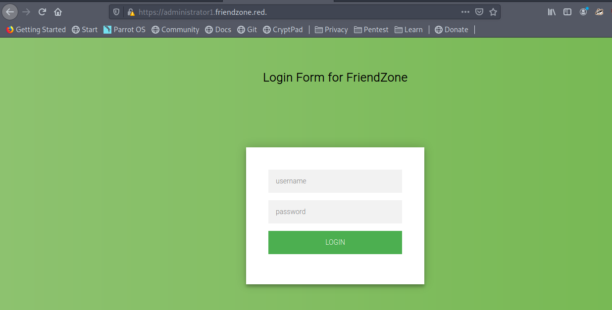 Let’s try administrator1.friendzone.red. with https