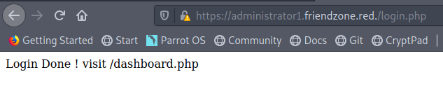 Now let’s move on to https://administrator1.friendzone.red./dashboard.php