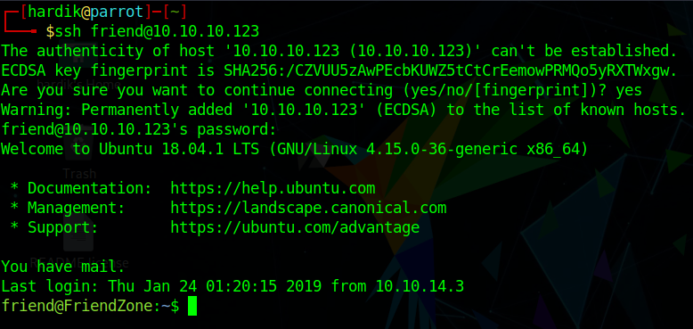 Let’s try to login with ssh with the same friend credentials