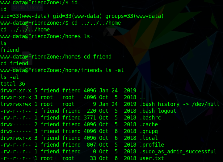 we can see that we are only www-data user and we can’t read user.txt now.
